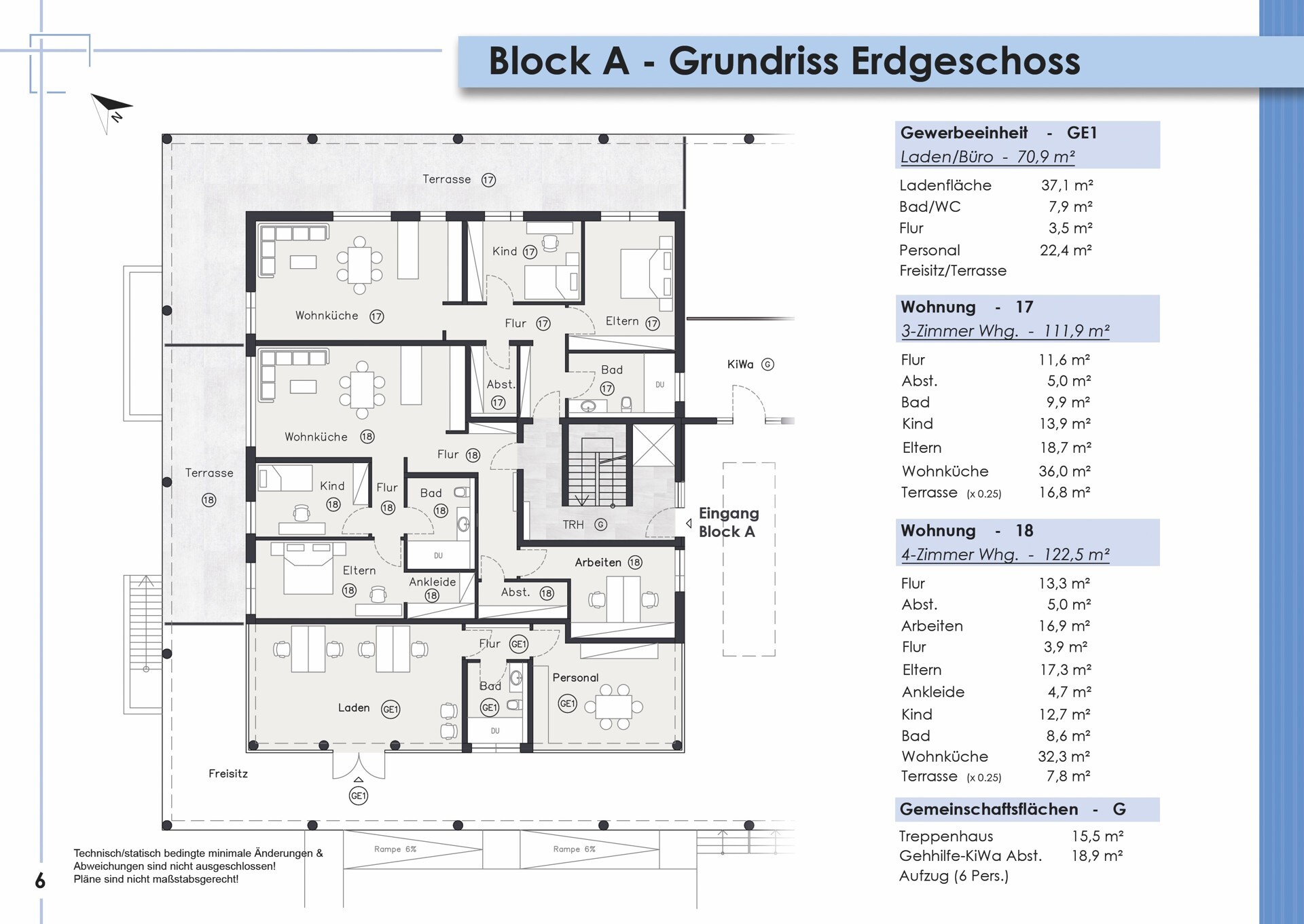 – im Erdgeschoss von Gebäude A liegt die Wohnung mit der Nummer 18