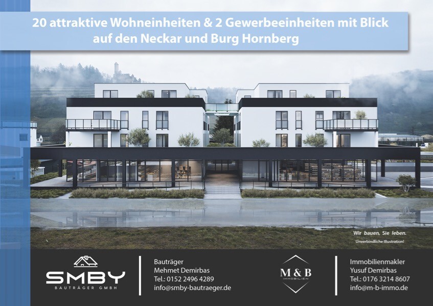 Dieses exklusive Wohnprojekt vereint hochwertige Bauqualität mit modernem Design und durchdachter Funktionalität. Genießen Sie die freie Aussicht auf den Neckar und die Burg Hornberg – eine idyllische Kulisse für Ihr neues Zuhause.