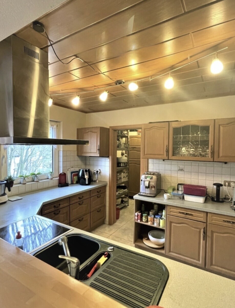 Im Kellergeschoss befinden sich auf etwa 110 m² eine Sauna, ein großzügiger Partykeller, eine Waschküche, ein weiteres Zimmer sowie die Garage und ein Fahrradkeller.