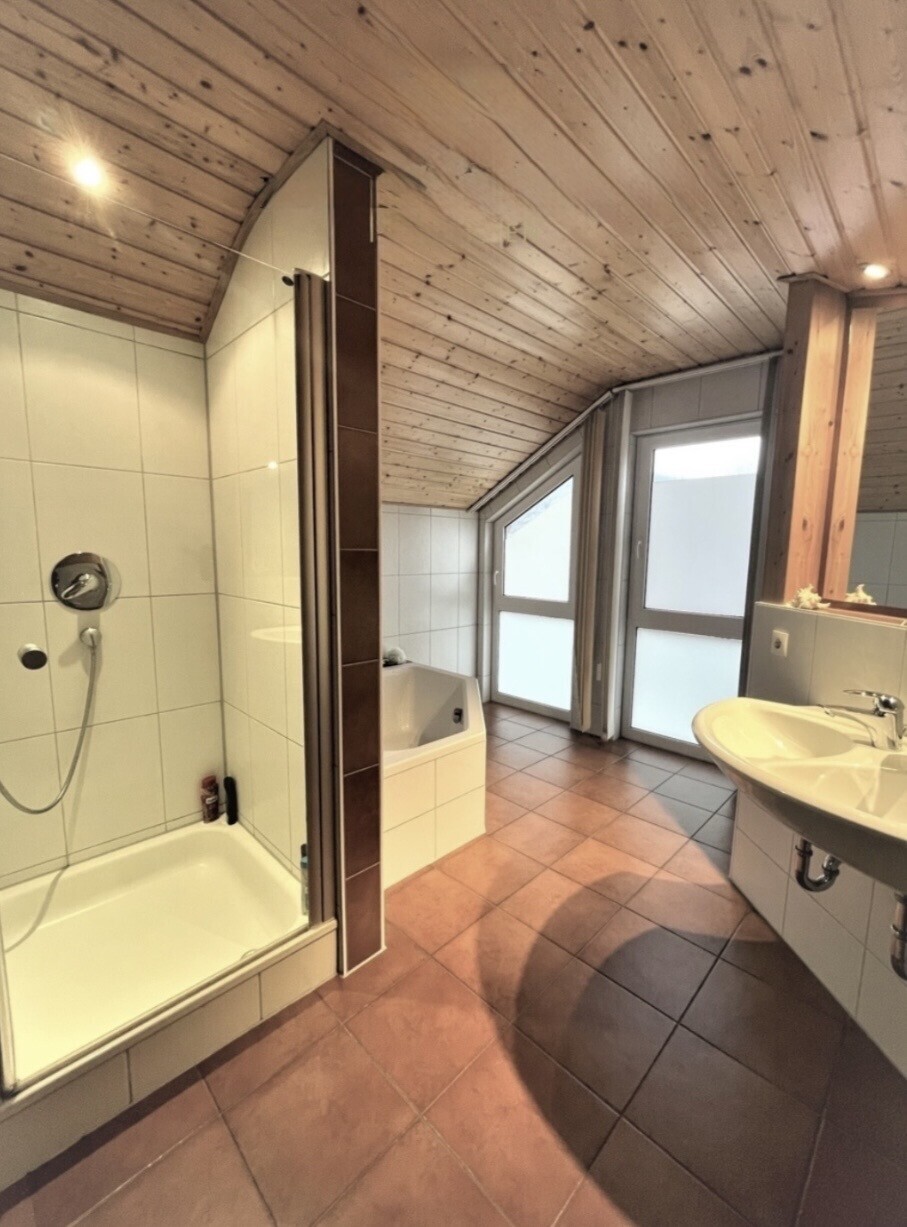 Die Maisonette-Wohnung Nr. 3 im Ober- und Dachgeschoss umfasst ca. 214 m² und bietet insgesamt acht Zimmer, eine Einbauküche mit Speisekammer, ein großes Wohn-Esszimmer mit Kaminofen, ein großes Bad sowie ein Duschbad mit WC und zwei Flure. Zwei großzügige Balkone laden hier zum Entspannen und Verweilen ein.